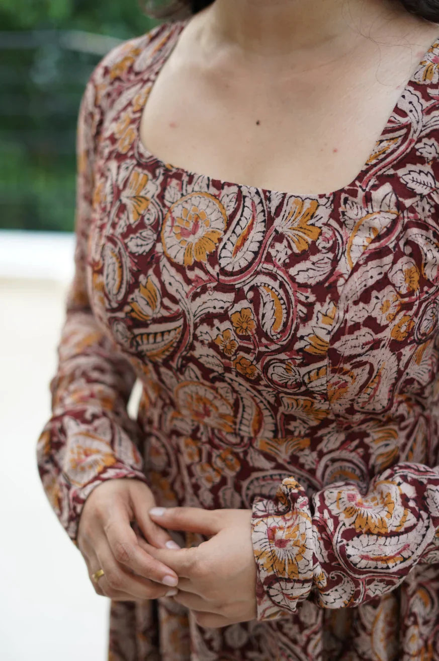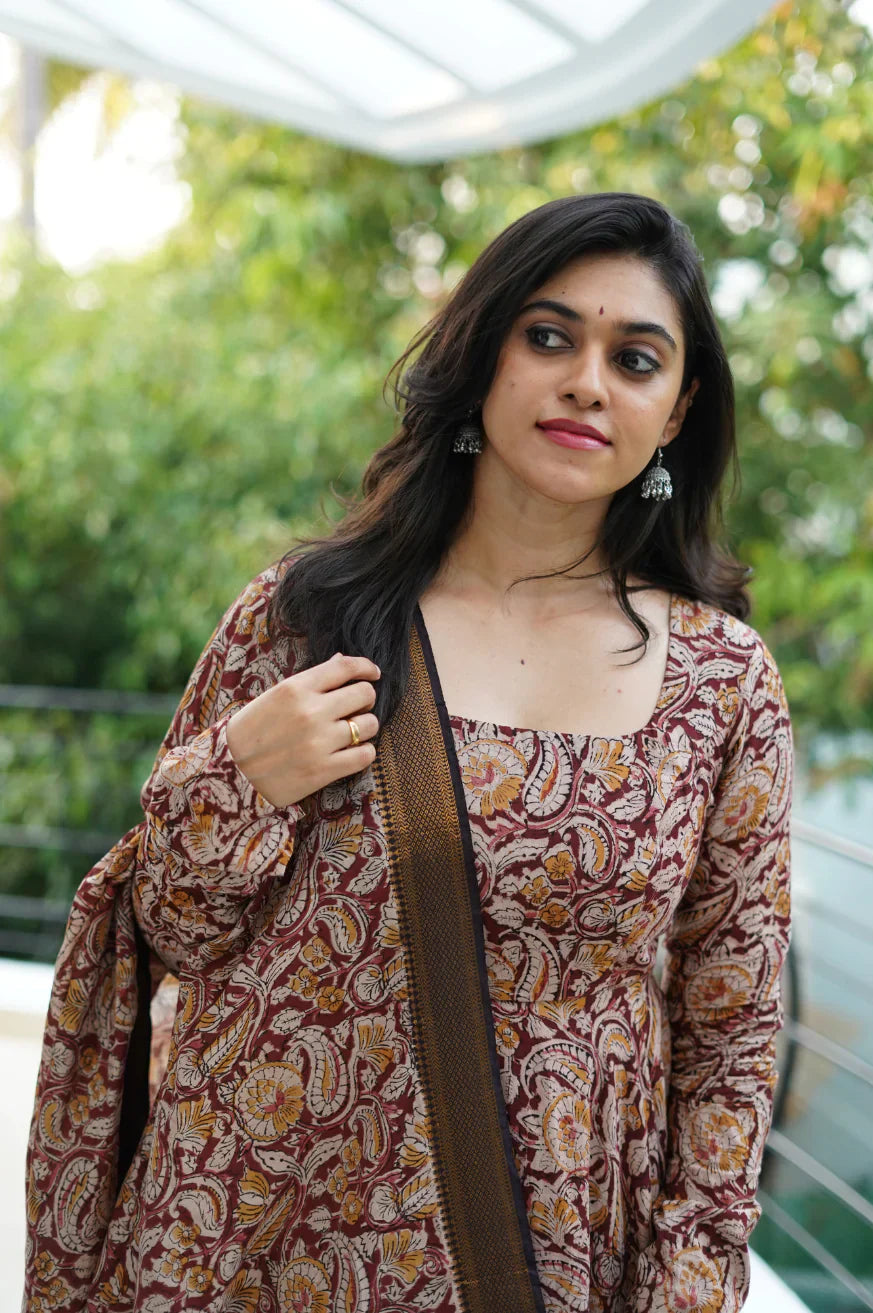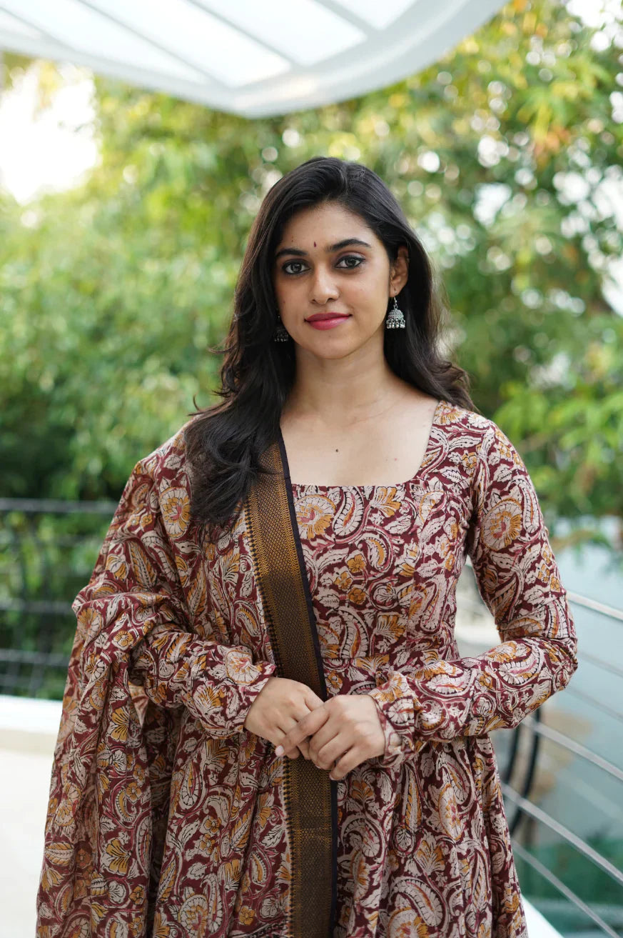 Devaki hand-painted Kalamkari Anarkali with Silk Dupatta