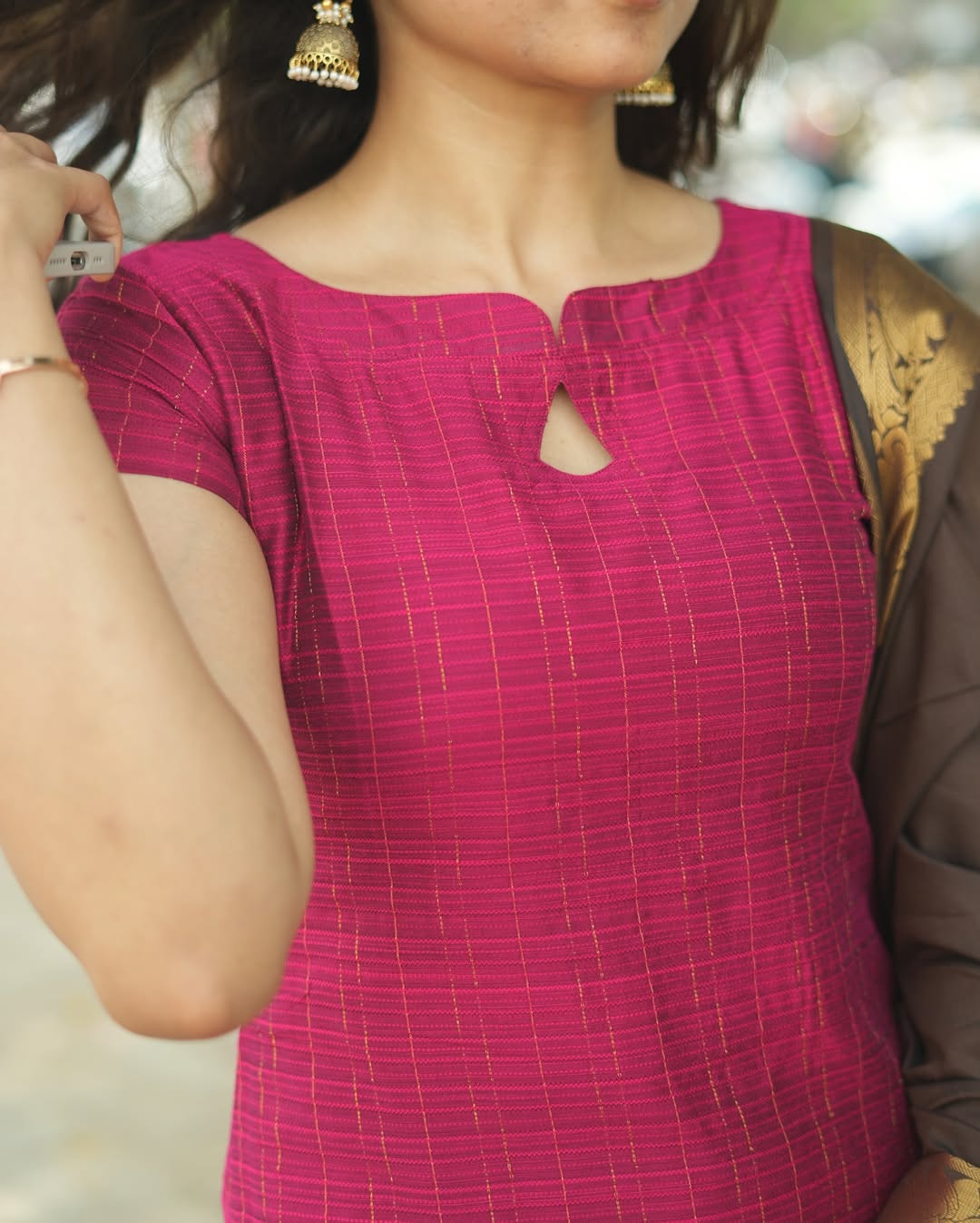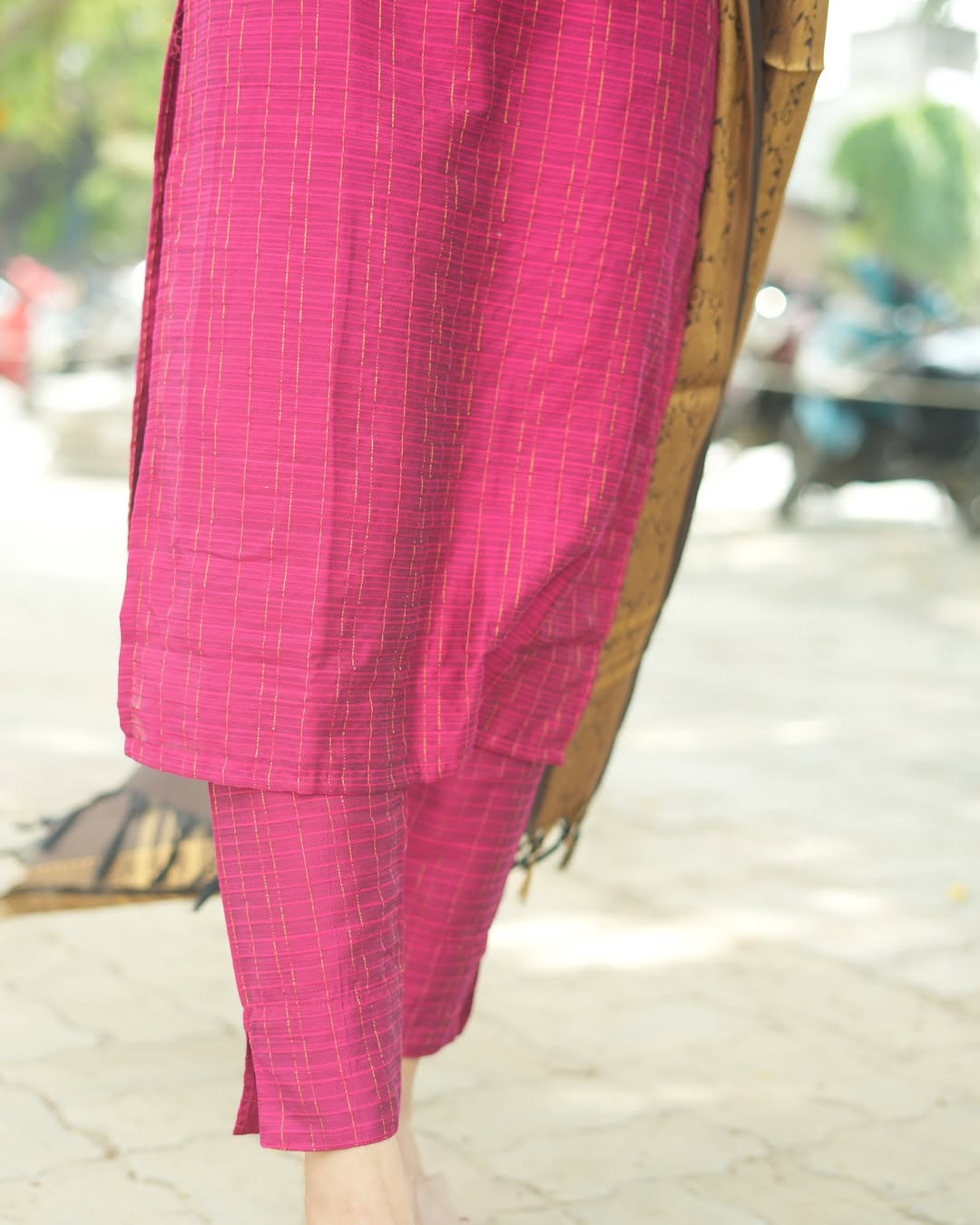 Kurti In Cotton Rib Raw Silk With Subtle Gold Suit Set